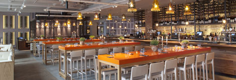 The venue ties together several different components: a large bar, a cocktail lounge, a kitchen and a deli, along with a basement wine cellar. What is good to see is that all these different parts converge together quite seamlessly, rather than being bolted together. The main concourse is extremely open, although there are separate partitions with the ‘cabana’ style seating in the window enclaves allowing you to claim a small space of your own. Downstairs in the wine cellar, the walls are lined with a great number of bottles, well-lit enough to create a feeling of intimacy.