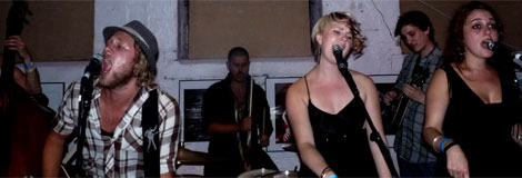 With his blonde hair sticking out under a trilby, guitar in hands and wearing wide rimmed geek-chic specs Ness looked every inch the Norwegian glam-jazz god. However he certainly wasn’t the only personality on stage as his six-piece supporting band completed the mise-en-scene. Standing next to him were two backing singers decked out in sexy black dresses, one of them welding a flute, both wearing massive smiles. Behind them were a mandolin player, a guy on double base and another guitar player. As they greeted the crowd and leapt into the first track they displayed the kind of unity that was sorely missing from the previous performance.