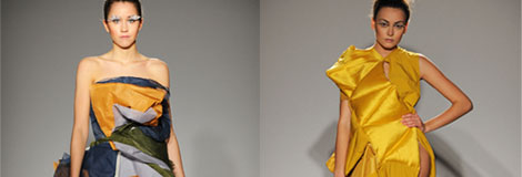 The longer more-extravagant eveningwear dresses were by far the highlight of the show and Kelly Hulderman’s signature torn-paper piece was a show-stopper. The garment obviously drew on the idea of origami and the crate paper-esque flow of the dress made for a real jaw-dropper.