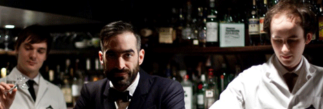 The bartenders are dressed in uniforms that are combination between those of scientists and those of barbers, indicating the crossover in styles and approach.