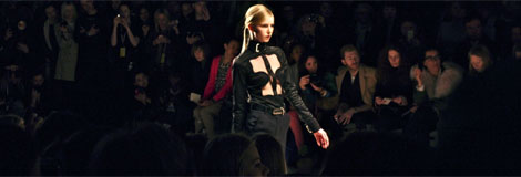 So, with all this in mind I was fascinated to see what someone with such a strong signature style would pull out of the bag next. Last season was a departure from his heavily embellished body cons but I wasn’t a huge fan of the white interspersed with sheer he relied on so heavily – I wanted something a little more interesting. And I wasn’t disappointed. I felt a little like Koma had reversed his aesthetic, covering areas of the body he would normally show and exposing unexpected areas; a technique that actually proved far more dramatic than his past collections.