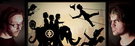 All the way through The Great Puppet Horn’s Pangolin’s Teatime, it’s very difficult to get a sense of what‘s coming next. Sure, there’s giant piles of cardboard on either side of a rectangular screen. There’s also Jeremy Bidgood and Lewis Young, the guys who write and perform the show, sitting behind the screen after heading up the aisle in a choreographed routine making loud and enticing noises. But this is a puppet theatre show, and when the only thing faster than the pacing is the speed at which the puppets get thrown from the stage, all you can do is keep up and enjoy what’s (sometimes literally) heading your way.