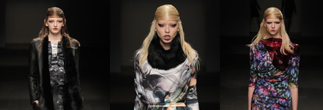 Outerwear and accessories are a particularly strong aspect of the collection, with washed leather jackets and Toscana fur being key pieces for autumn/winter 2012. The collection is toughened up and given a modern touch in the form of glass neckpieces and collars. Designed by digital glass artist Kane Cali, the effect is said to create ‘a second skin, reflecting off the body’.
