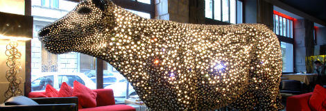 In Mayfair, Anna Casa Interiors celebrates London Design Week with the installation of the Milky Way, a superb light sculpture by Manooi and Swarovski. Created in Budapest as part of 2007 cow parade, the crystal cow features 13,000 crystals and celebrates the symbiosis of Europe’s different cultures and experiences. This dramatic piece will be displayed on an innovative garden designed by Moore Harrison. It is also an opportunity to see the new collection in the showroom and Baxter’s one-off Chestermoon sofa created by acclaimed artist Draga Obradovic (14-23 September).