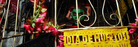 Celebrating the Mexican festival El Dia de los Muertos in Bishopsgate with flowers, bright colours and overflowing tequila